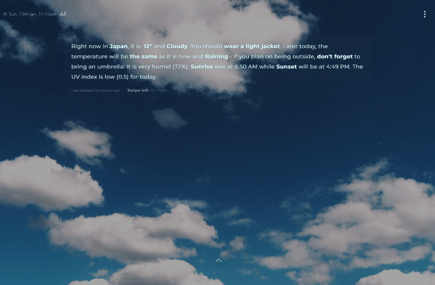 The beautiful interface of Optic Weather makes it easy for users to navigate through the app and find the information they need. There’s also nature sounds, which can help you relax while listening to your favorite music or podcast. And my favorite, the A.I. suggested activities for any type of weather so you can plan your day accordingly.